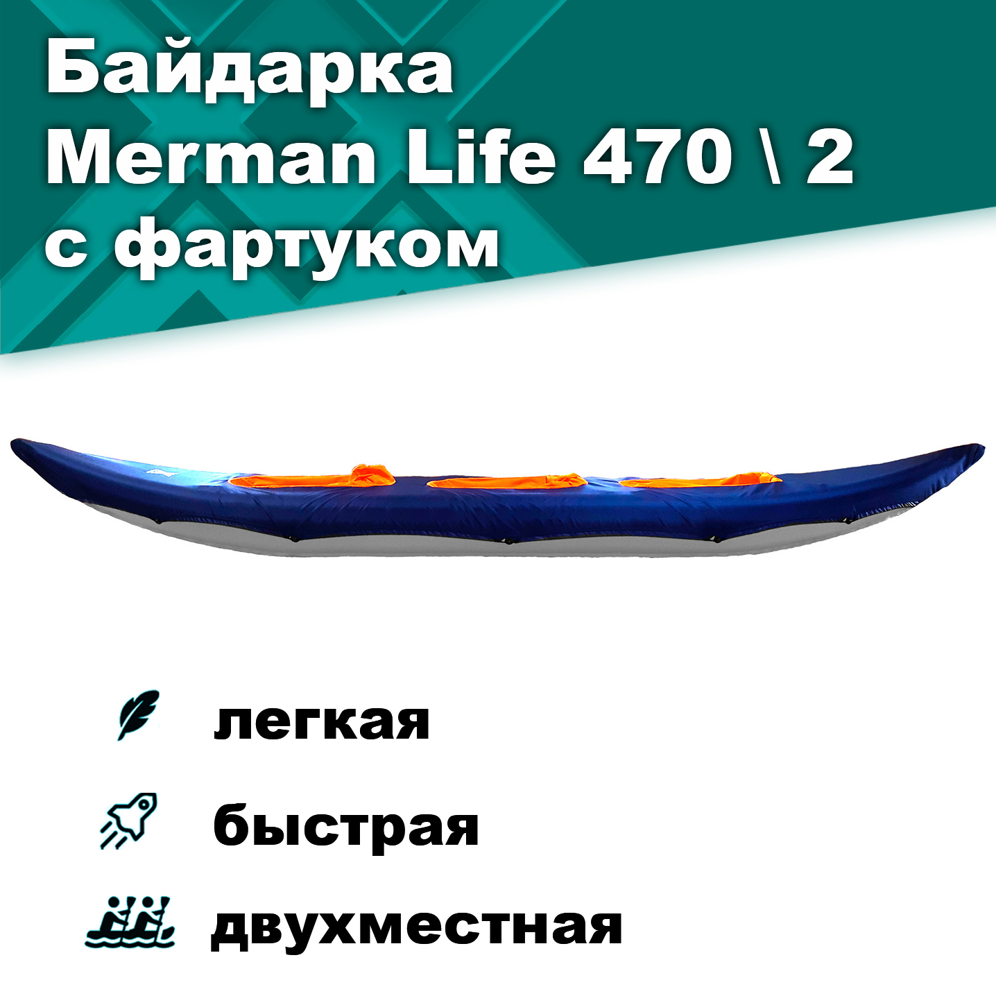 Merman Life 470/2 с фартуком - полноценная двухместная байдарка или может использоваться как байдарка для путешествий с большим багажником. Байдарка отечественного производства.
